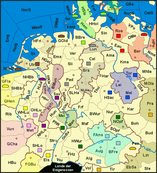 Rheinbistümer (R)  | A Bm Muenster - Sauerland F Ebm Koeln - Hz Juelich A Ebm Trier - Noerdliches Hz Lothringen | 3 | 2 |