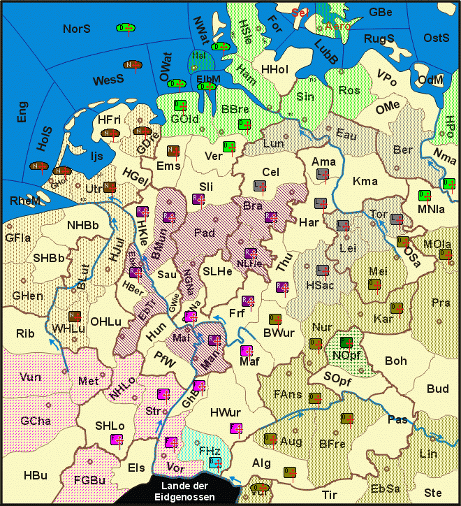 Österreich (O)  | A Allgaeu Supports A Fm Hohenzollern A Augsburg - Hz Wuertemberg (*Bounce*) A Bm Wuerzburg Supports A Nuernberg - Fm Ansbach A Fm Ansbach Supports A Augsburg - Hz Wuertemberg (*Cut*) A Karlsbad Supports A Meissen A Meissen Supports A Ostsachsen A Mgf Oberlausitz - Mgf Niederlausitz (*Fails*) A Nuernberg - Fm Ansbach (*Bounce*) A Ostsachsen Supports A Mgf Oberlausitz - Mgf Niederlausitz A Passau - Bm Freising F Vorarlberg Hold | 11 | 1 |