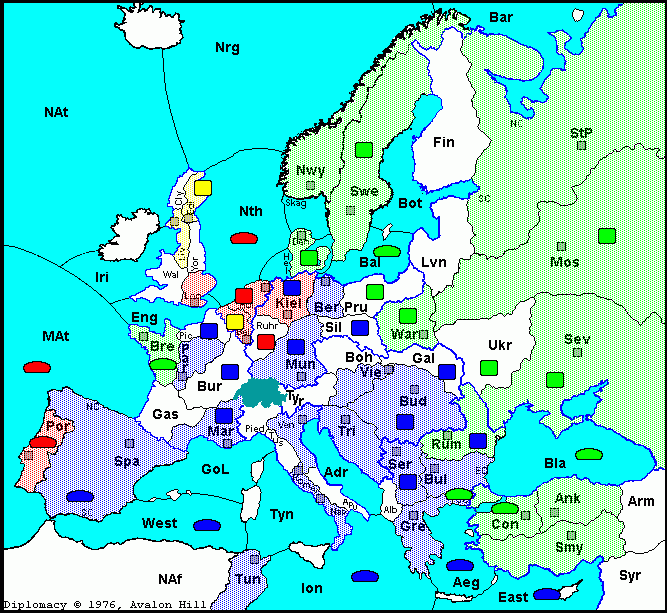 A Belgium - Ruhr A Kiel Supports A Belgium - Ruhr (*Dislodged*) F Mid-Atlantic Ocean - Western Mediterranean (*Fails*)