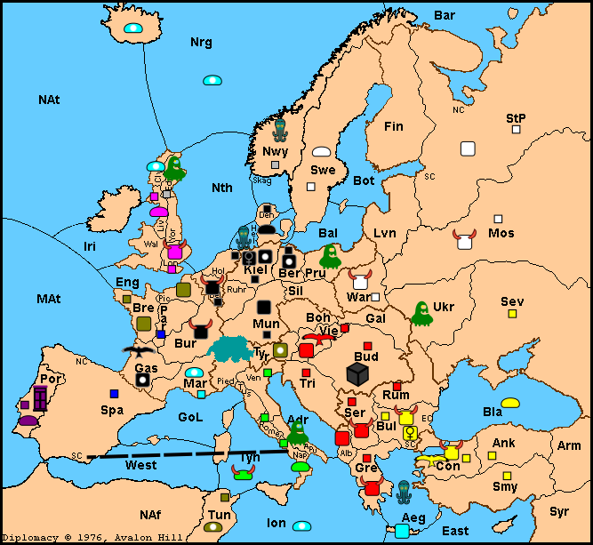 WM Edi H WM Naf-Tun (*Bounce*)(*Wahrsager*) WM Mos-Sev (*Bounce*)(*dislodged*) WM Pru-Ber (*fails*) WM Mos retreats to Ukr + WM Apu | ||