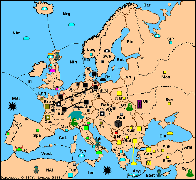 SM Cly-Edi (*fails*)(*disbanded*) SM Edi H SM East-Smy (*bounce*) SM Tun H (*dislodged*) SM Tun retreats to Naf + SM Apu | ||