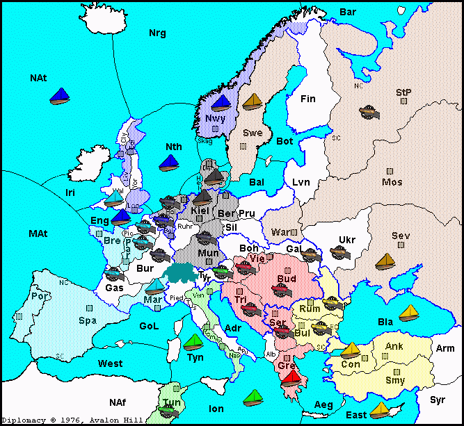 Diese Diplomacy-Partie läuft im Rahmen der 3. Offenen Deutschen eMail-Diplomacy-Meisterschaft 2003 auf der Datenbank von Ludomaniac.