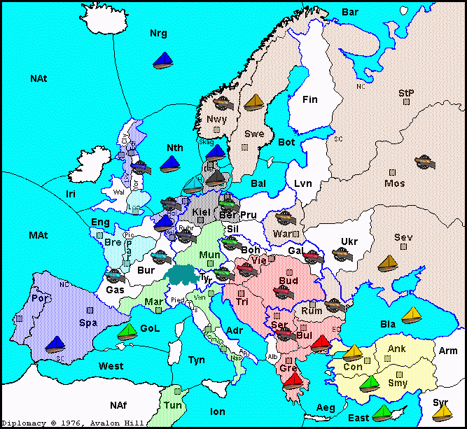 Diese Diplomacy-Partie läuft im Rahmen der 3. Offenen Deutschen eMail-Diplomacy-Meisterschaft 2003 auf der Datenbank von Ludomaniac.