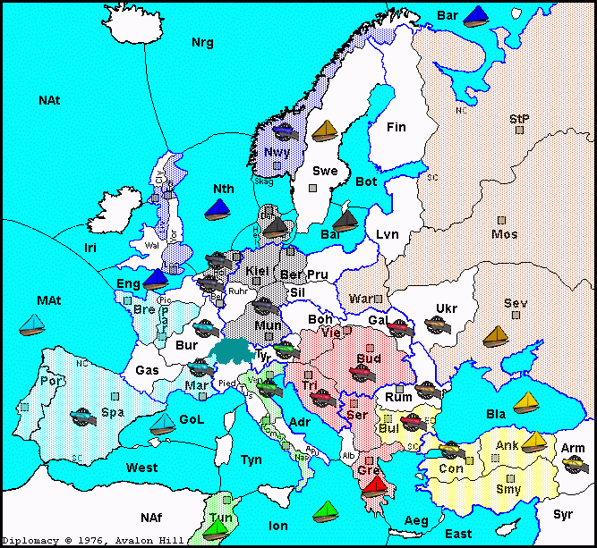Alle Partien wurden mit Realpolitik Version 1.6.6 ausgewertet. Das verwendete (und andere) Designs gibt es bei Ludomaniac's RP-Tools.