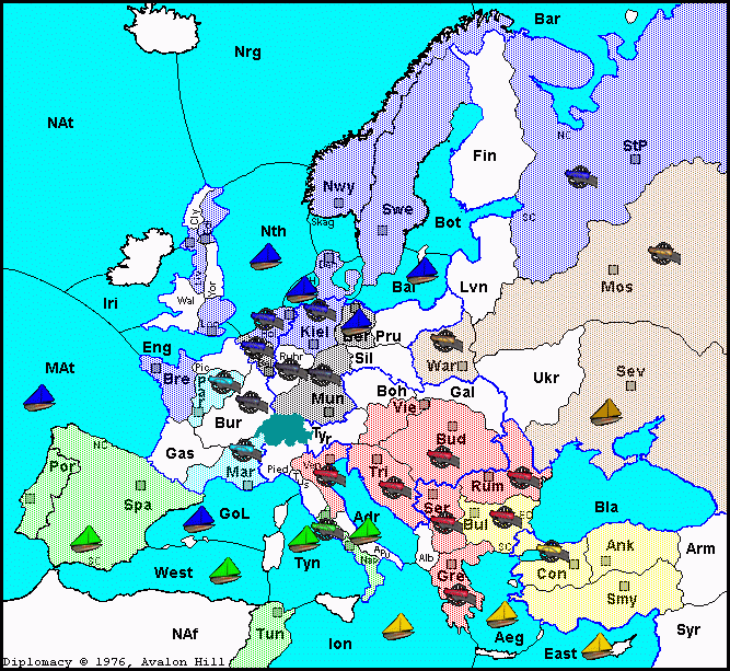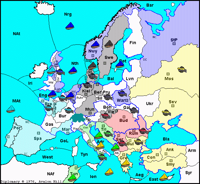 Stand der Partien: Frühling 1909 Alle Partien wurden mit Realpolitik Version 1.6.6 ausgewertet. Das verwendete (und andere) Designs gibt es bei Ludomaniac's RP-Tools. Bei Auswertungs-Fehlern bitte sofort eine Mail an den Spielleiter.