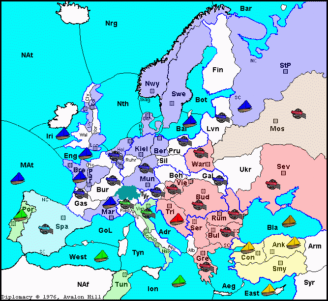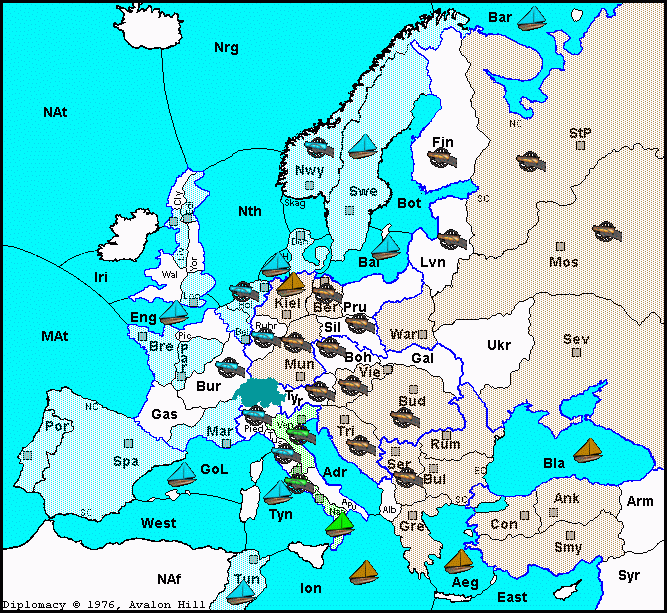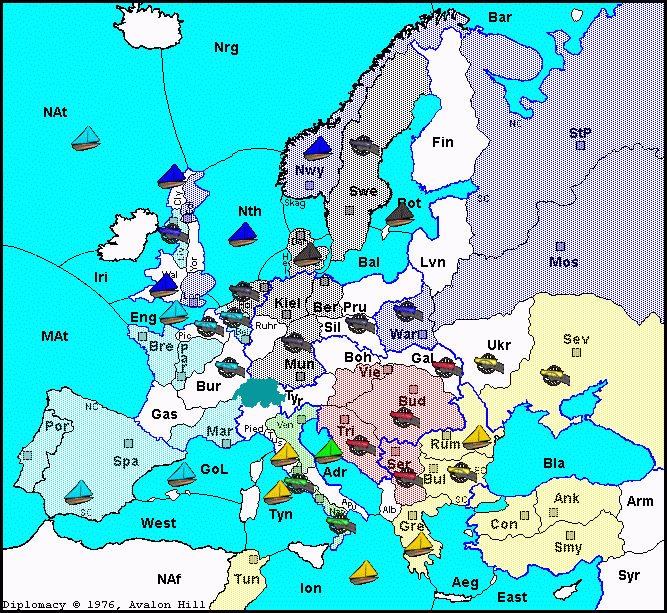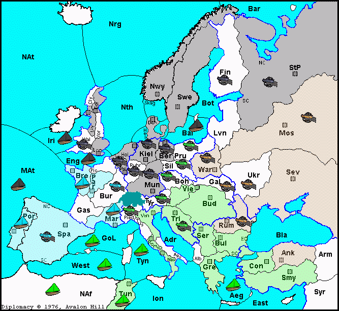 Stand der Partien: Frühling 1912 Alle Partien wurden mit Realpolitik Version 1.6.6 ausgewertet. Das verwendete (und andere) Designs gibt es bei Ludomaniac's RP-Tools. Bei Auswertungs-Fehlern bitte sofort eine Mail an den Spielleiter.