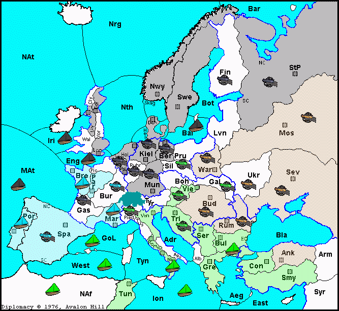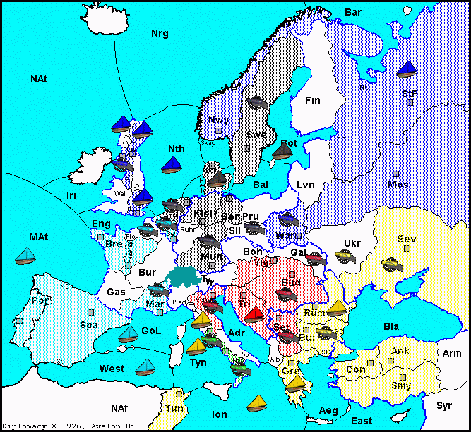 Stand der Partien: Herbst 1912 Alle Partien wurden mit Realpolitik Version 1.6.6 ausgewertet. Das verwendete (und andere) Designs gibt es bei Ludomaniac's RP-Tools. Bei Auswertungs-Fehlern bitte sofort eine Mail an den Spielleiter.