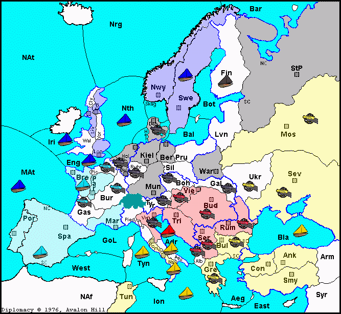 Stand der Partien: Frühling 1918 Alle Partien wurden mit Realpolitik Version 1.6.6 ausgewertet. Das verwendete (und andere) Designs gibt es bei Ludomaniac's RP-Tools. Bei Auswertungs-Fehlern bitte sofort eine Mail an den Spielleiter.